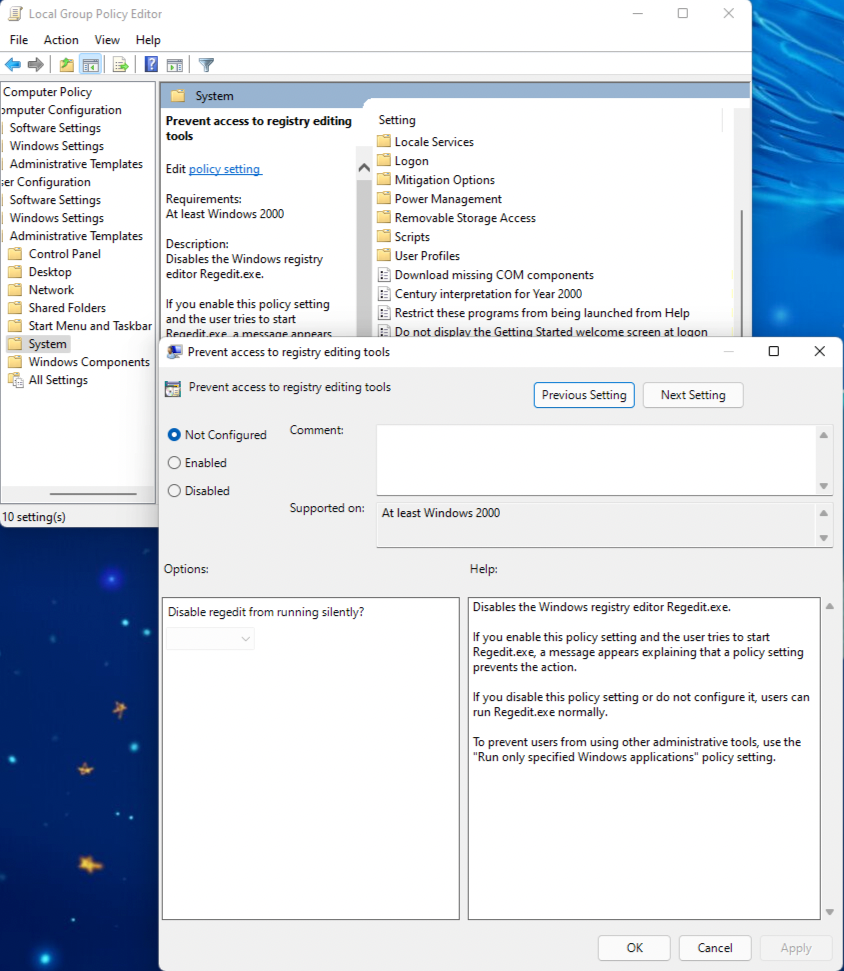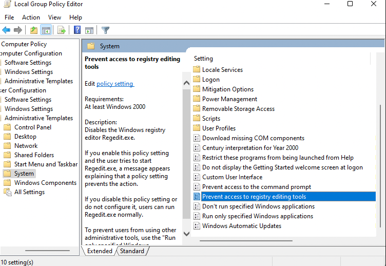 3. Double-click on Prevent Access To Registry Editing Tools setting.