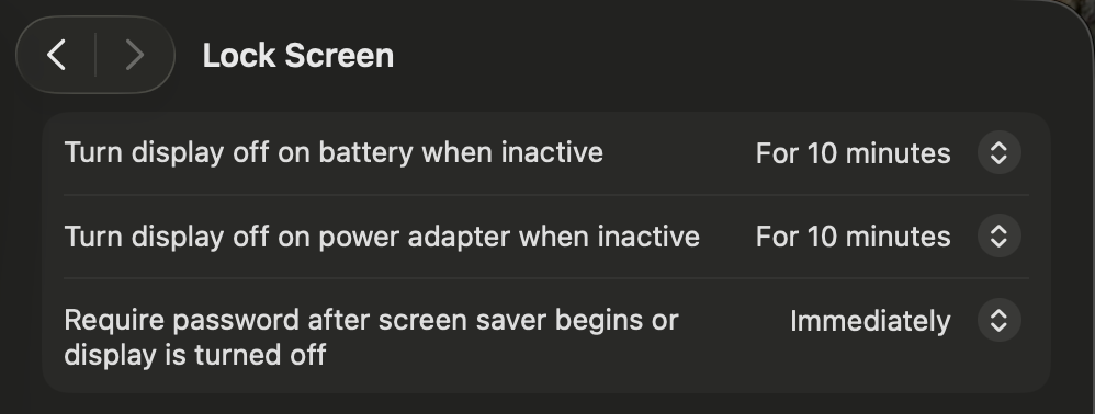 Note: Ensure you configure the auto screen lock time to be fifteen minutes or less.