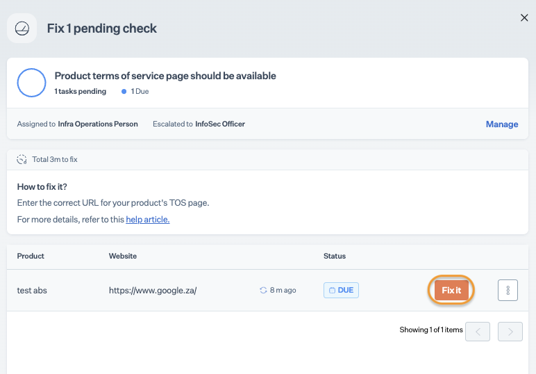 # Resolve Sprinto Check For Product Terms of Service (ToS) Page Availability On Company Products
