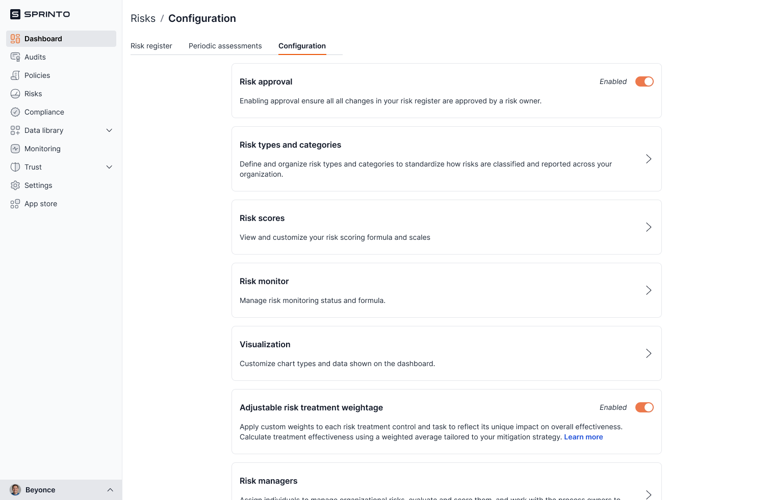 1. Sign in to Sprinto and select **Risks** from the left navigation panel.